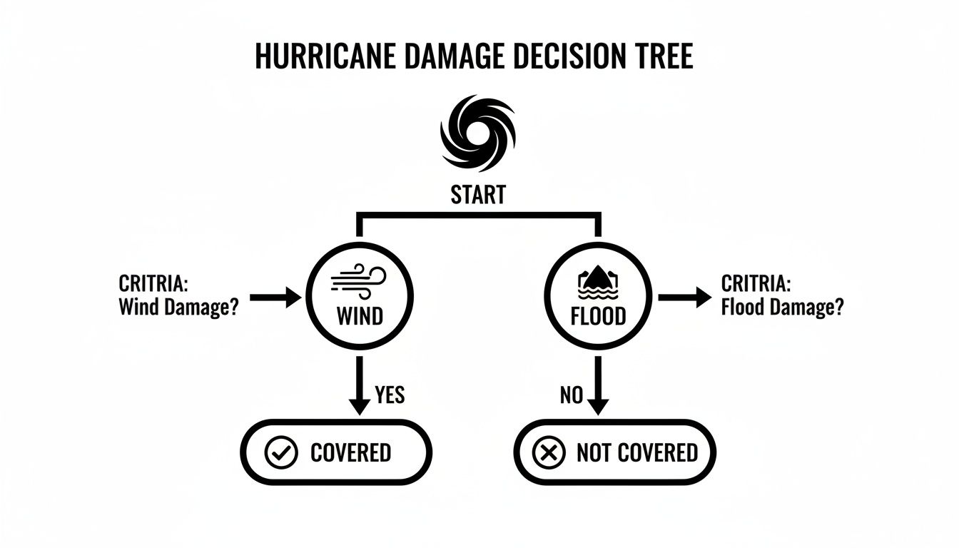 This simple decision tree breaks down the split in coverage after a hurricane strikes.